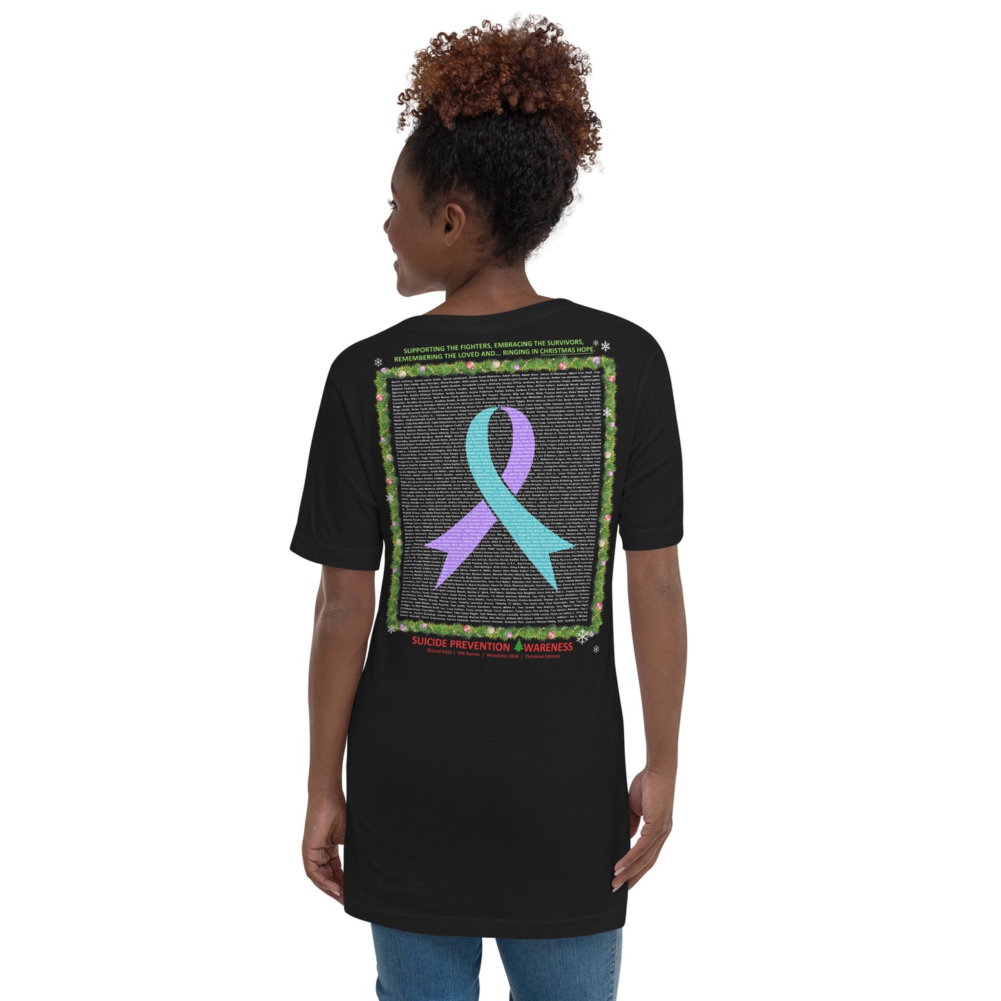 "I wore the shirt to a family gathering, and several people commented on how beautiful it was. When I shared the story behind it, everyone was moved. My aunt, who had also lost someone to suicide, hugged me and said it gave her comfort too. This shirt has sparked meaningful conversations, and I’m so grateful for that." - Don R