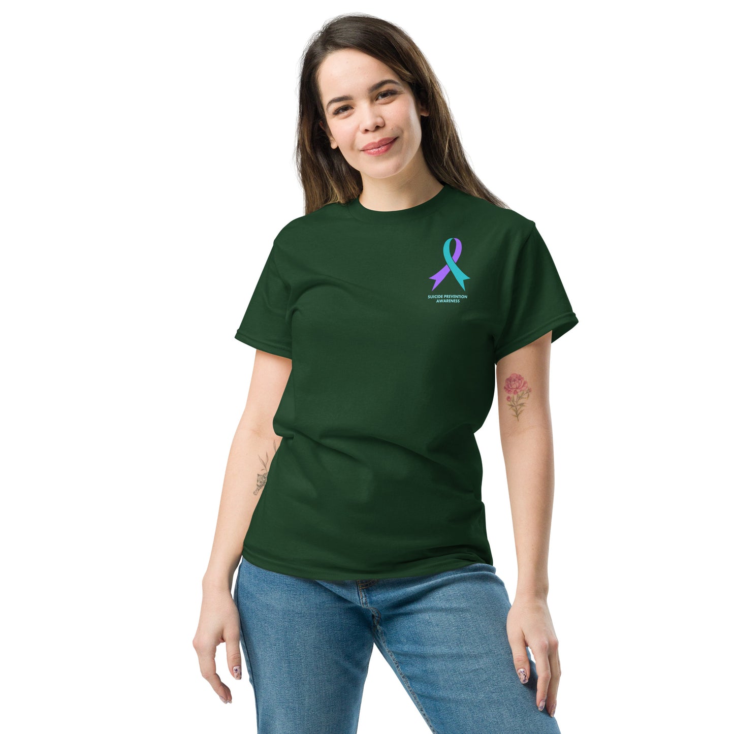 "I was wearing the shirt at my local coffee shop when a stranger approached me. She noticed the subtle design and asked about it. After I explained the cause, she opened up about losing her mother to suicide. I never expected a simple shirt to open that kind of conversation." - Justin J
