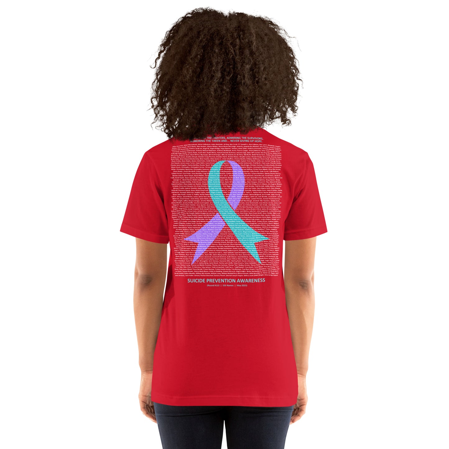 "I wore the shirt to my yoga class, and after the session, the instructor came up to me and thanked me for wearing something with such purpose. She ended up joining our local suicide prevention group. It’s amazing how a piece of clothing can create such an impact." - Paula B