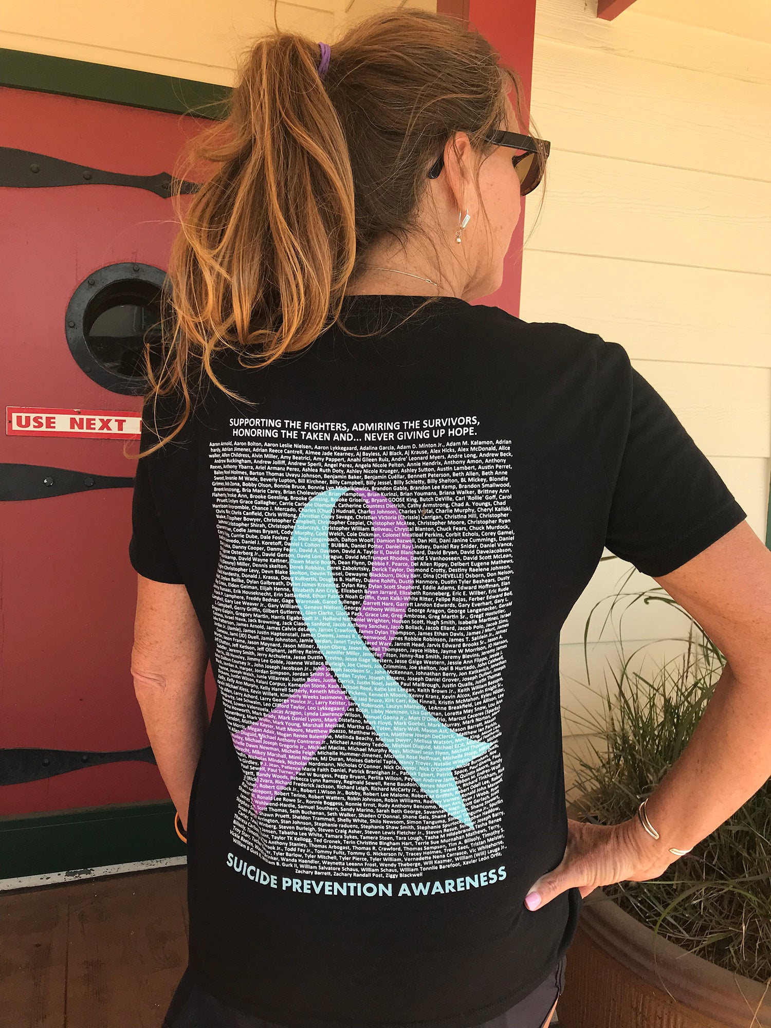 "I wore the shirt to my yoga class, and after the session, the instructor came up to me and thanked me for wearing something with such purpose. She ended up joining our local suicide prevention group. It’s amazing how a piece of clothing can create such an impact." - Paula B