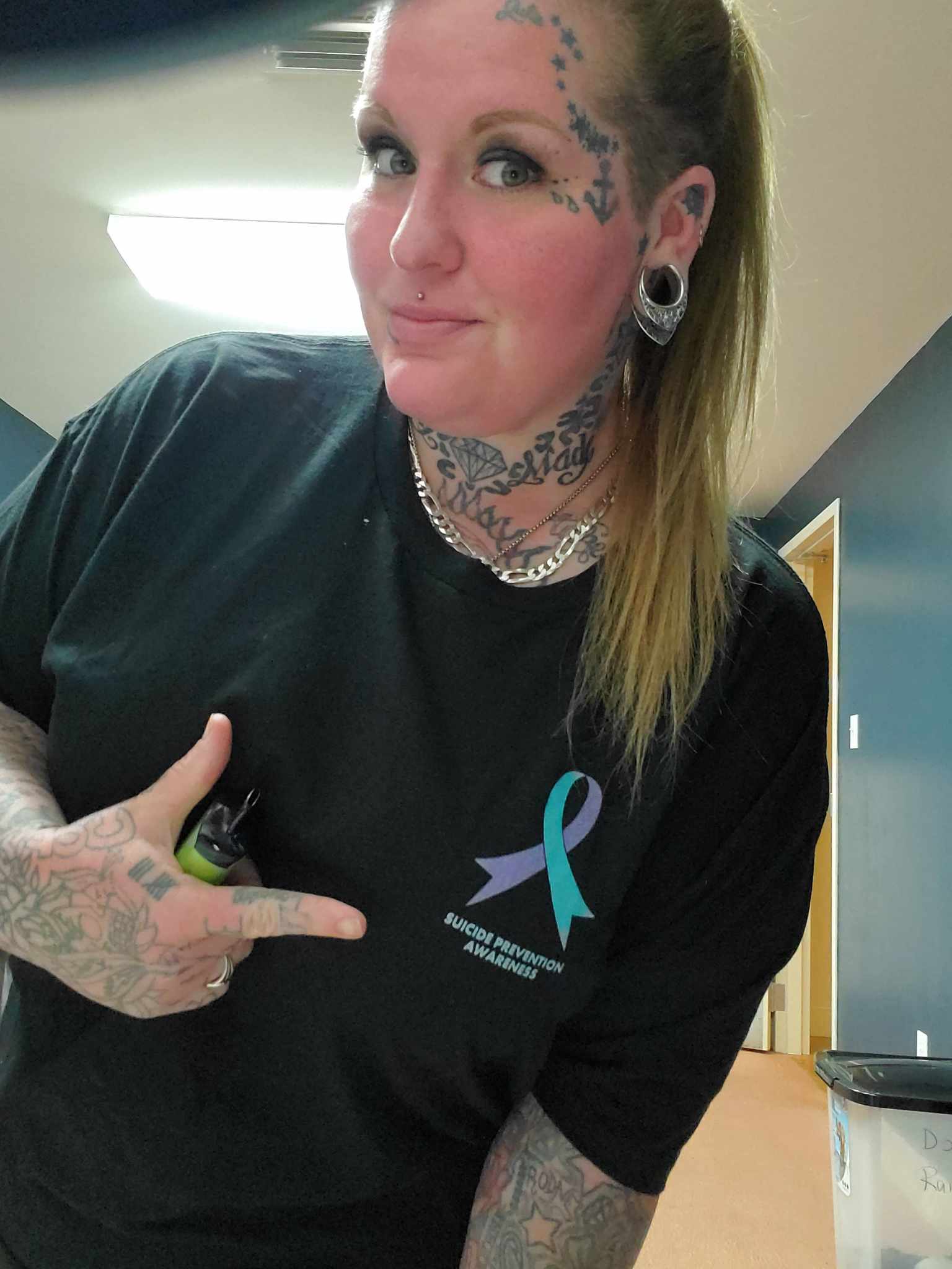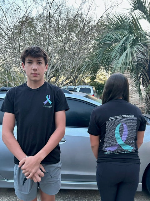 "I was wearing the shirt at my local coffee shop when a stranger approached me. She noticed the subtle design and asked about it. After I explained the cause, she opened up about losing her mother to suicide. I never expected a simple shirt to open that kind of conversation." - Justin J