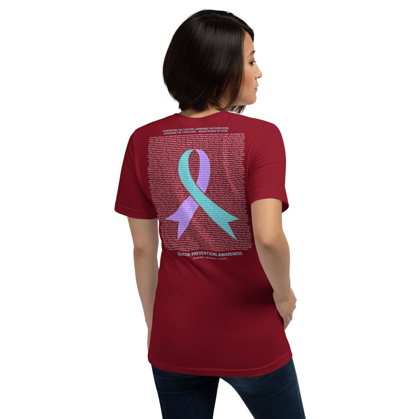 "I wore the shirt to my yoga class, and after the session, the instructor came up to me and thanked me for wearing something with such purpose. She ended up joining our local suicide prevention group. It’s amazing how a piece of clothing can create such an impact." - Paula B