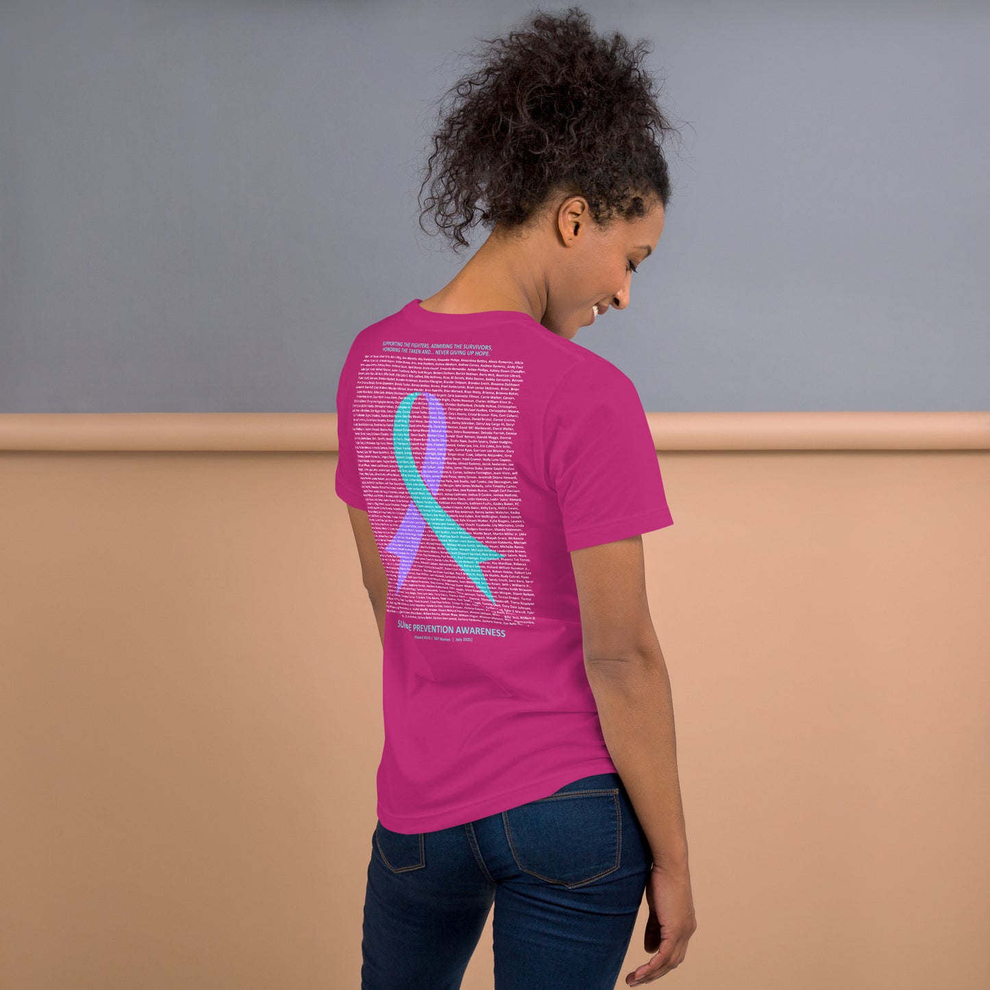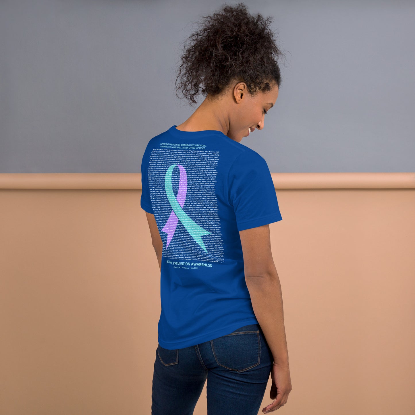 "I wore the shirt to my yoga class, and after the session, the instructor came up to me and thanked me for wearing something with such purpose. She ended up joining our local suicide prevention group. It’s amazing how a piece of clothing can create such an impact." - Paula B