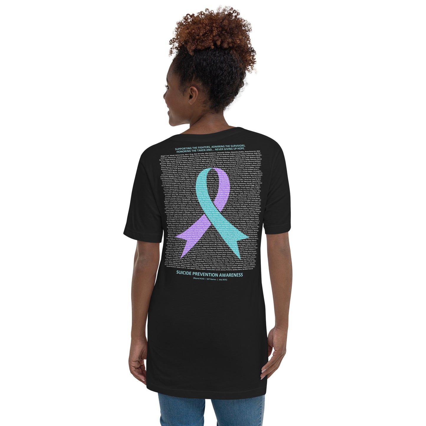 "I wore the shirt to my yoga class, and after the session, the instructor came up to me and thanked me for wearing something with such purpose. She ended up joining our local suicide prevention group. It’s amazing how a piece of clothing can create such an impact." - Paula B
