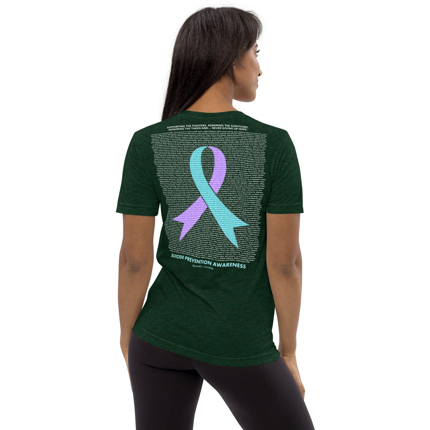 "I wore the shirt to my yoga class, and after the session, the instructor came up to me and thanked me for wearing something with such purpose. She ended up joining our local suicide prevention group. It’s amazing how a piece of clothing can create such an impact." - Paula B