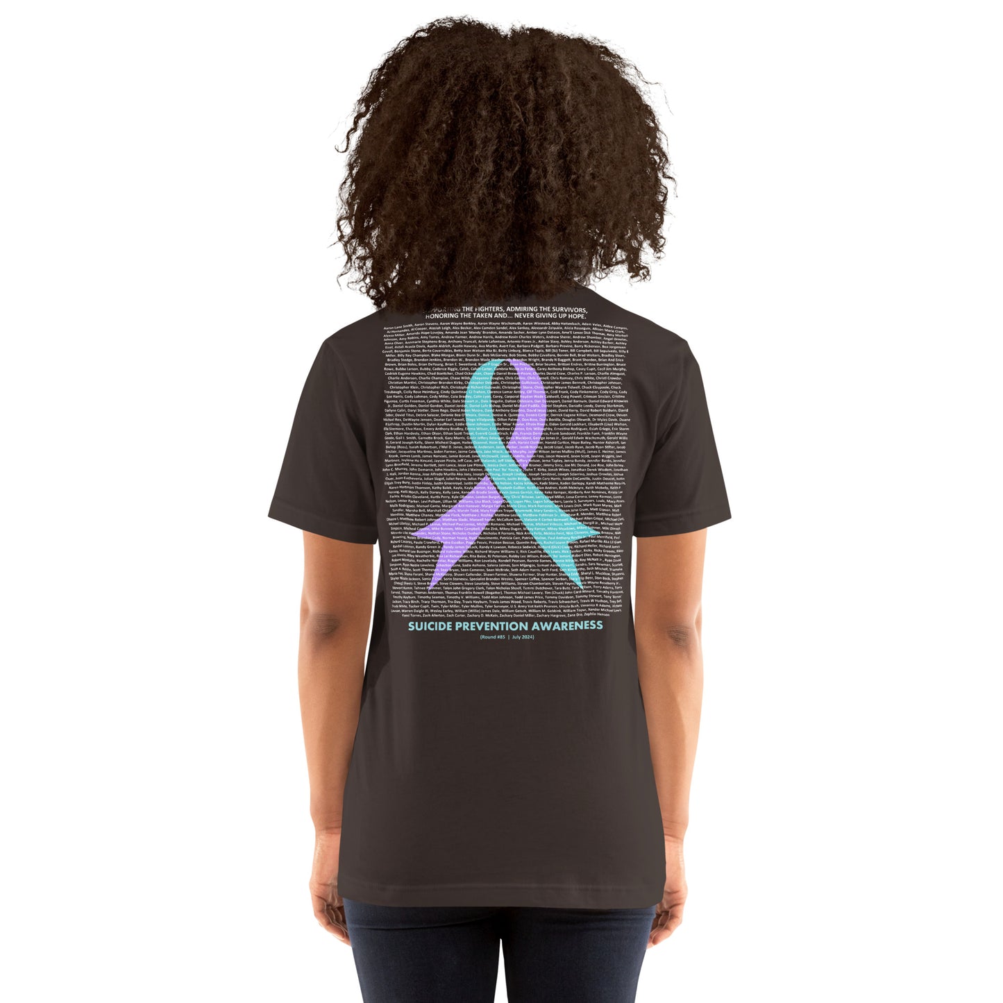 "I was wearing the shirt at my local coffee shop when a stranger approached me. She noticed the subtle design and asked about it. After I explained the cause, she opened up about losing her mother to suicide. I never expected a simple shirt to open that kind of conversation." - Justin J