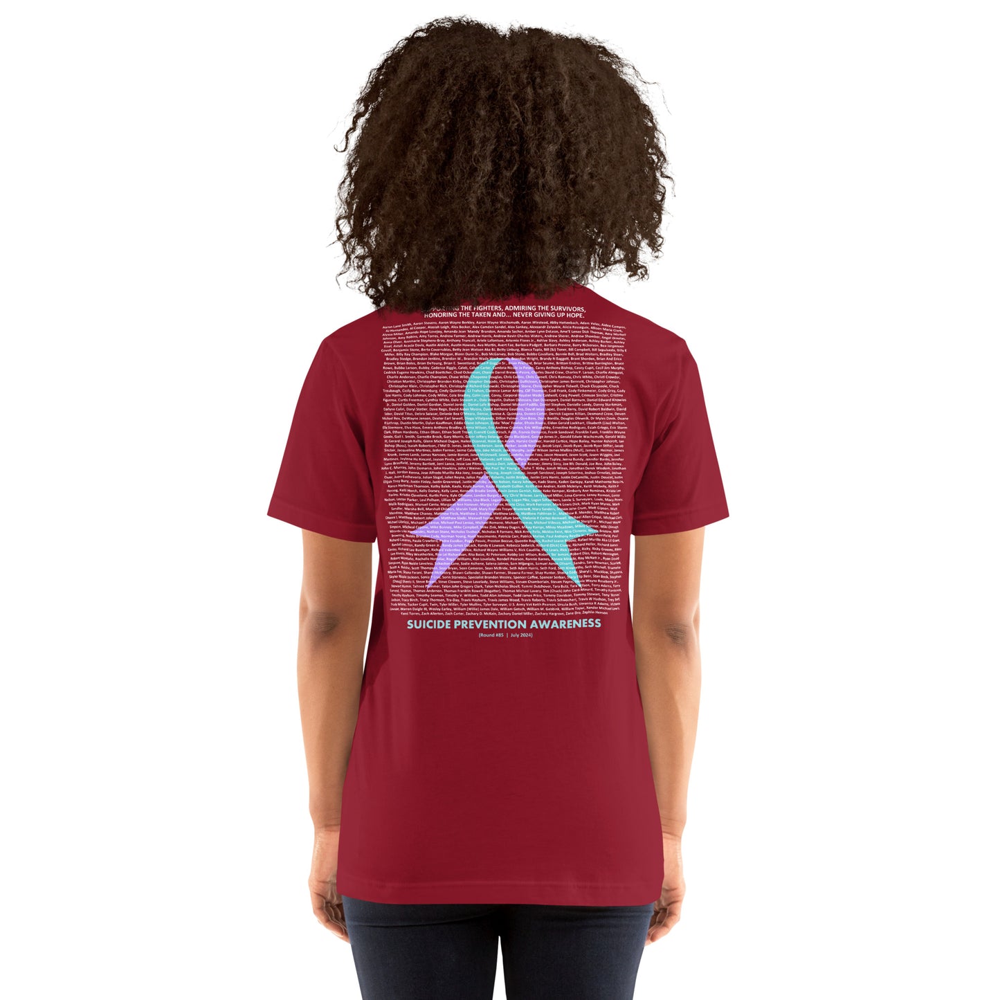 "I wore the shirt to my yoga class, and after the session, the instructor came up to me and thanked me for wearing something with such purpose. She ended up joining our local suicide prevention group. It’s amazing how a piece of clothing can create such an impact." - Paula B