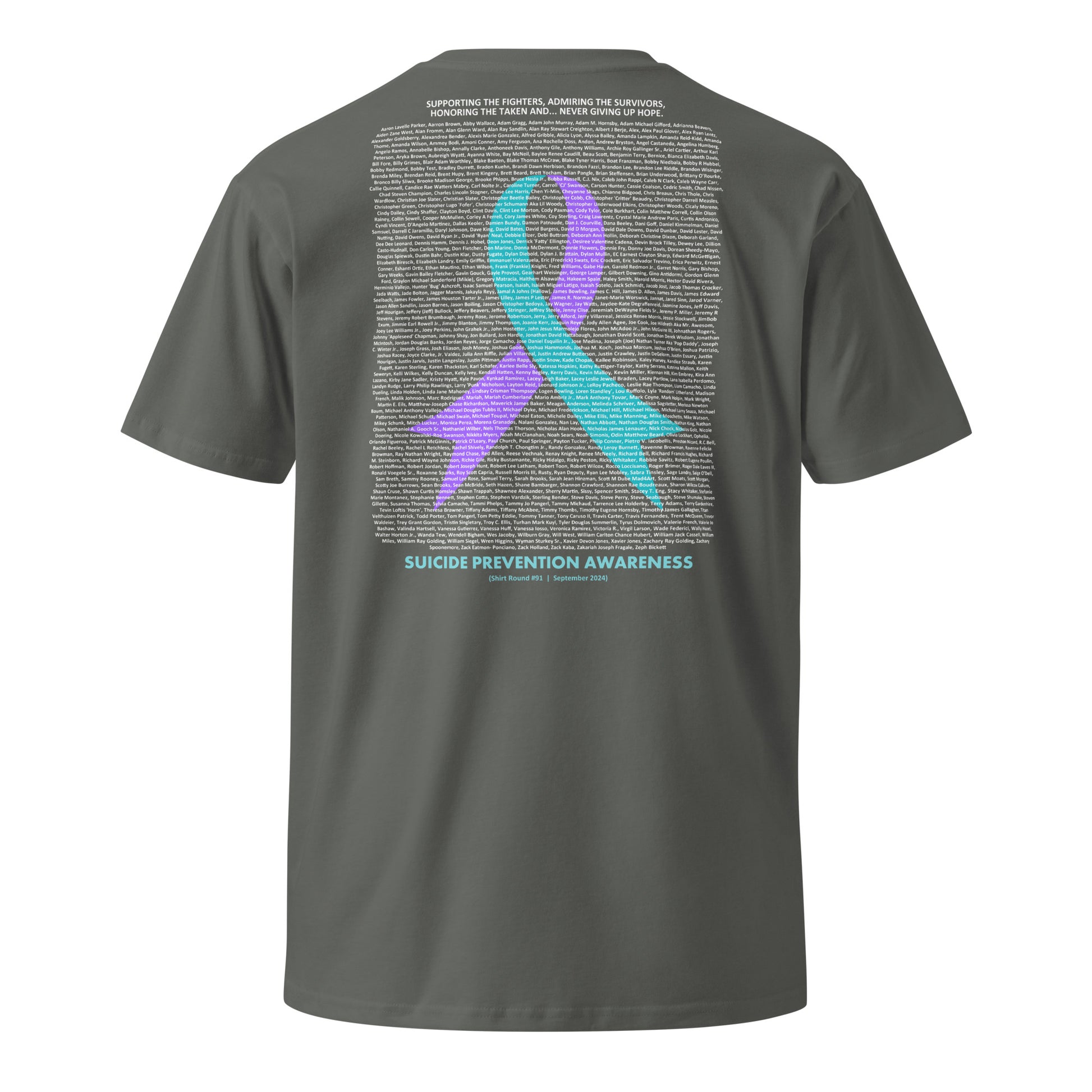 "I was wearing the shirt at my local coffee shop when a stranger approached me. She noticed the subtle design and asked about it. After I explained the cause, she opened up about losing her mother to suicide. I never expected a simple shirt to open that kind of conversation." - Justin J