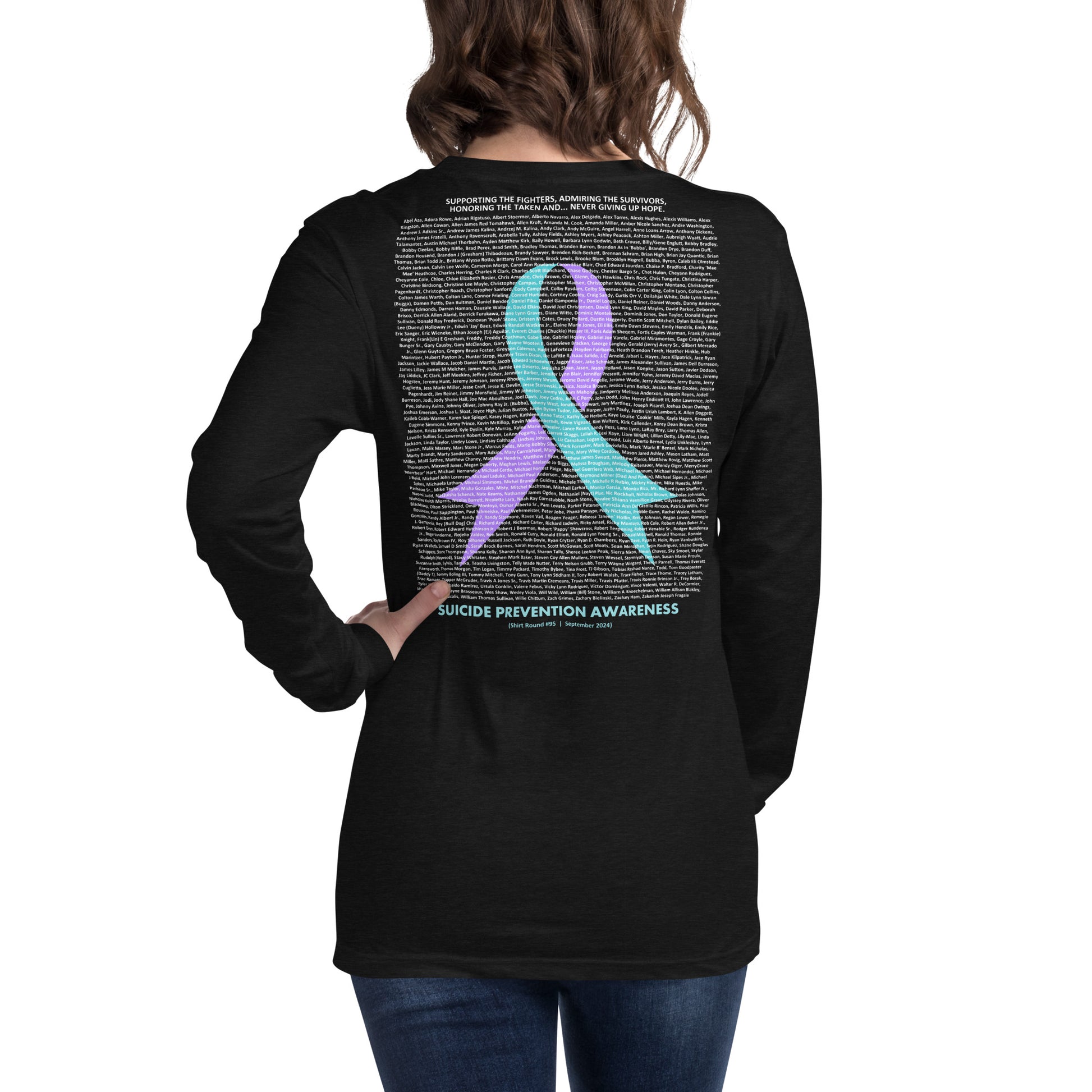 "I was wearing the shirt at my local coffee shop when a stranger approached me. She noticed the subtle design and asked about it. After I explained the cause, she opened up about losing her mother to suicide. I never expected a simple shirt to open that kind of conversation." - Justin J