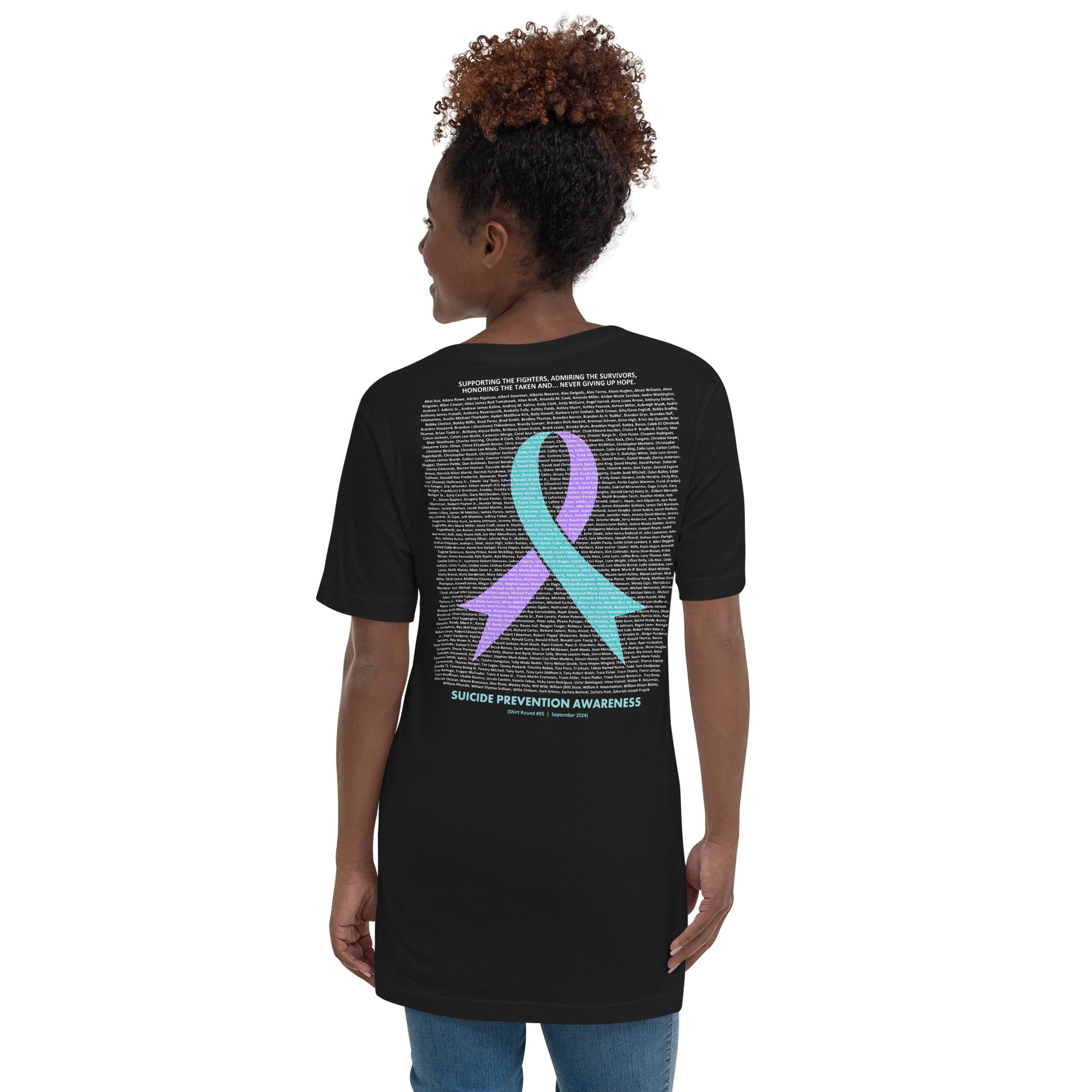 "I wore the shirt to my yoga class, and after the session, the instructor came up to me and thanked me for wearing something with such purpose. She ended up joining our local suicide prevention group. It’s amazing how a piece of clothing can create such an impact." - Paula B