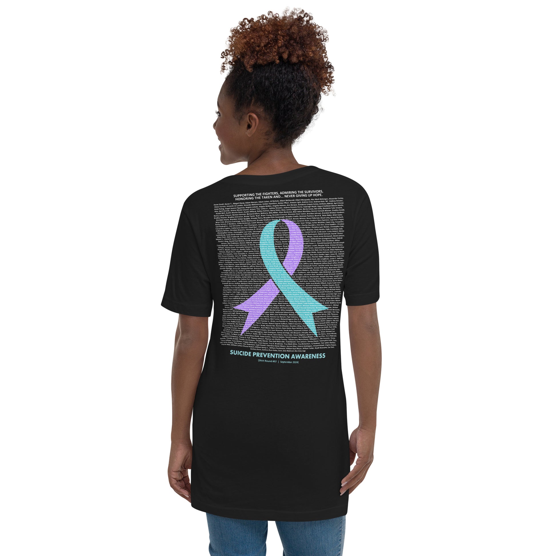 "I was wearing the shirt at my local coffee shop when a stranger approached me. She noticed the subtle design and asked about it. After I explained the cause, she opened up about losing her mother to suicide. I never expected a simple shirt to open that kind of conversation." - Justin J