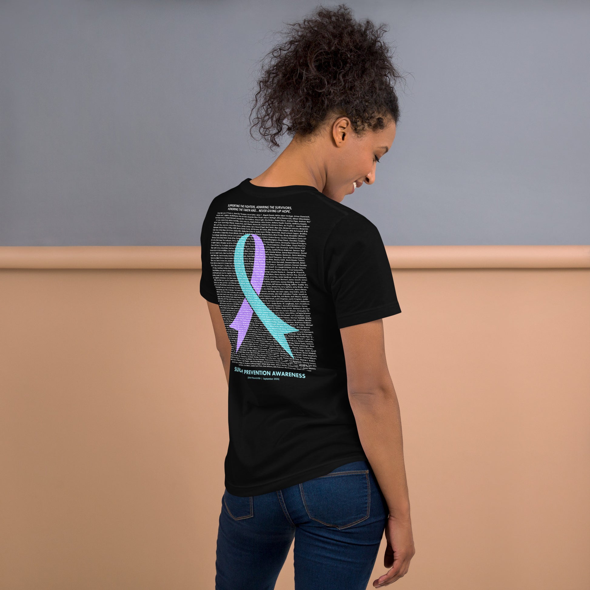 "I wore the shirt to my yoga class, and after the session, the instructor came up to me and thanked me for wearing something with such purpose. She ended up joining our local suicide prevention group. It’s amazing how a piece of clothing can create such an impact." - Paula B