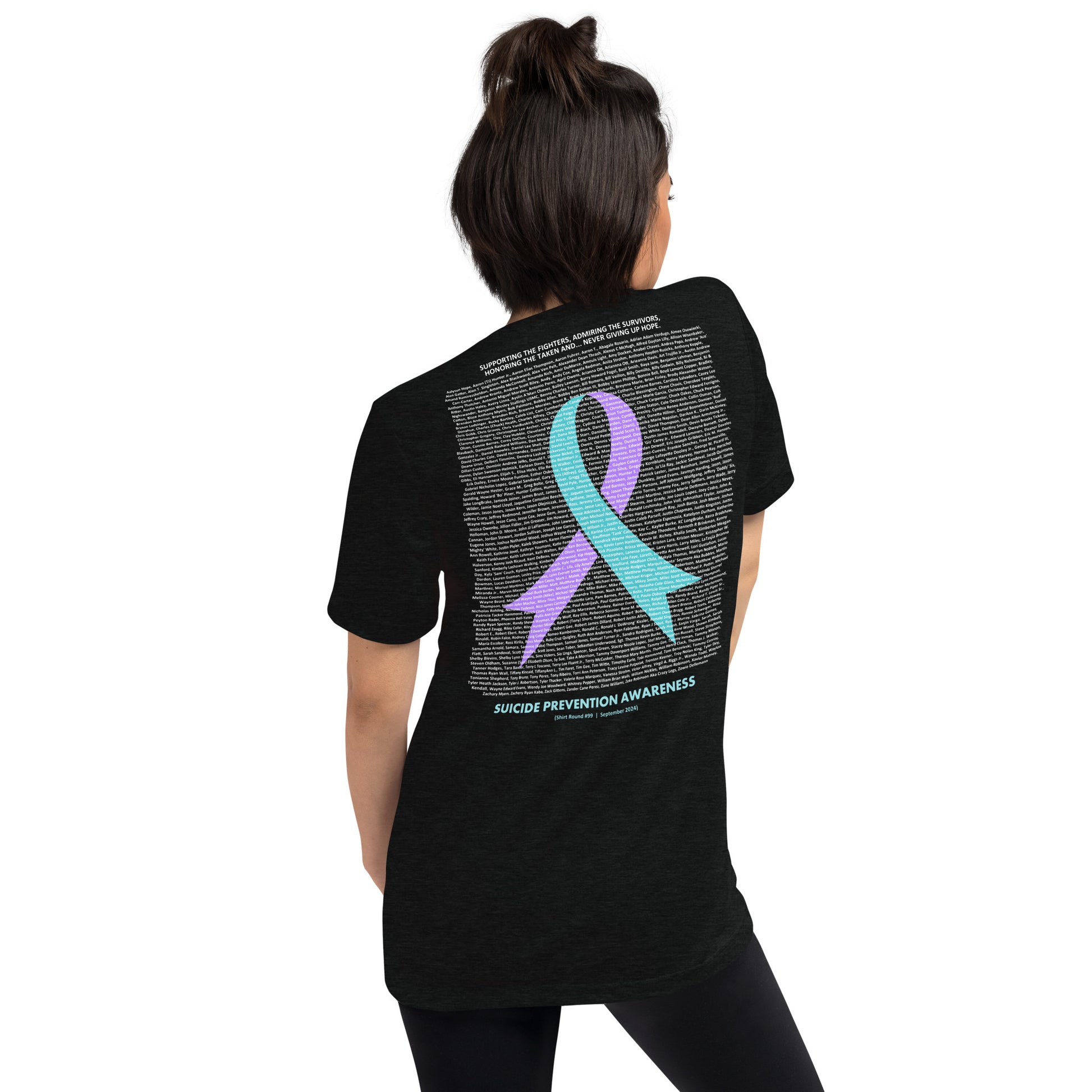 "I was wearing the shirt at my local coffee shop when a stranger approached me. She noticed the subtle design and asked about it. After I explained the cause, she opened up about losing her mother to suicide. I never expected a simple shirt to open that kind of conversation." - Justin J