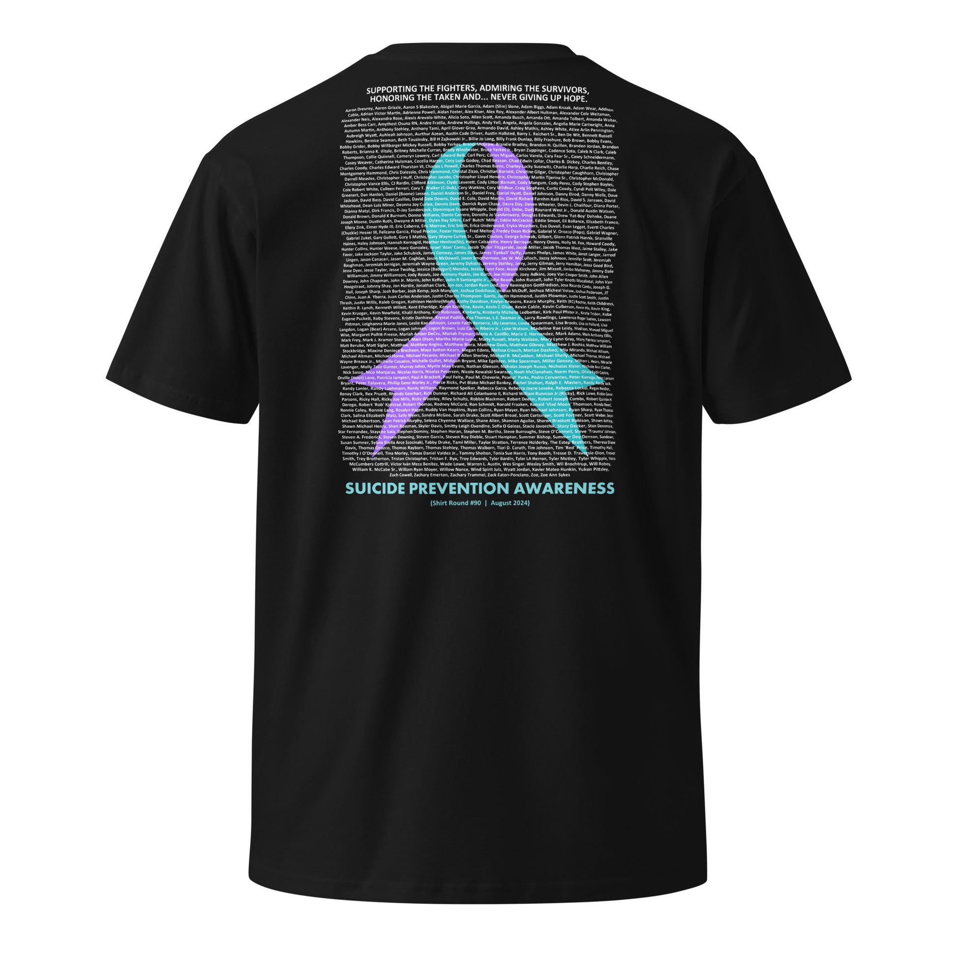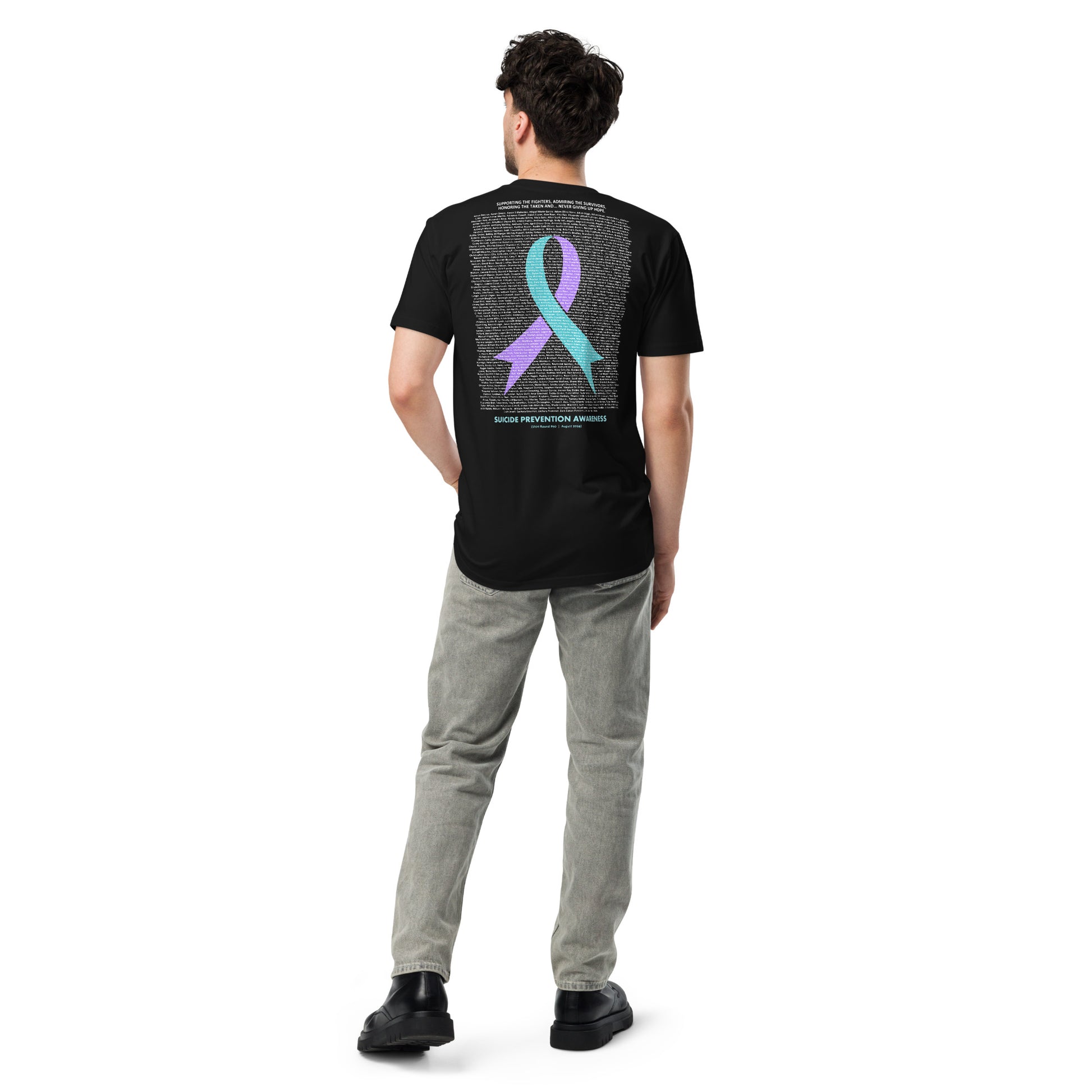 "I was wearing the shirt at my local coffee shop when a stranger approached me. She noticed the subtle design and asked about it. After I explained the cause, she opened up about losing her mother to suicide. I never expected a simple shirt to open that kind of conversation." - Justin J
